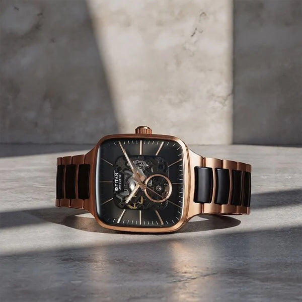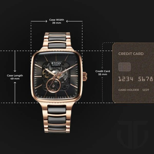 Titan Ceramic Fusion Automatic Square Black Dial Silver Dual-Toned Stainless Steel Bracelet Watch for Men - 90175KD03