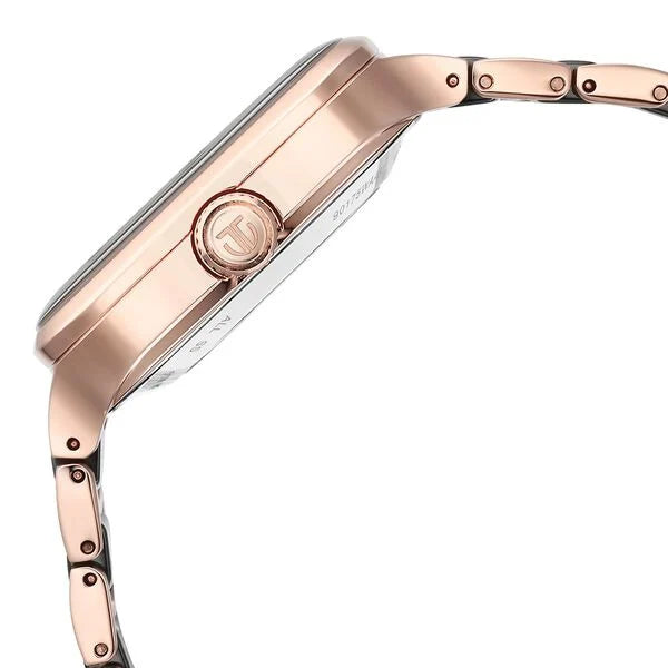 Make a stylish statement with this square dial watch in blue and silver, featuring an in-house automatic movement 7A20-S with 22 jewels for precision within -10sec to +30sec/day and a 36-hour power reserve. The skeletal dial elegantly showcases the intricate movement, while the angle-cut hands and plated bezel ring add to its refined aesthetics. The dual-tone solid link stainless steel and ceramic bracelet exudes sophistication, and the domed crystal with a concave dial adds a touch of modern charm. Transition seamlessly from day to night with this versatile timepiece, a perfect blend of automatic mastery and chic ceramic allure.