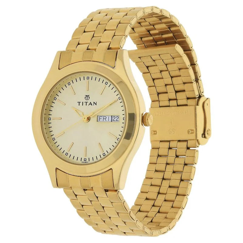 Titan Champagne Dial Analog with Day and Date watch for Men - 1648YM05