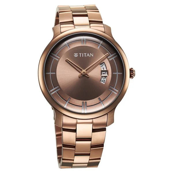 A must-have timepiece for all the watch aficionados, this men's analog watch from the collection by Titan will be a perfect pick. The black round dial is protected by a mineral glass. It features a crown for time adjustment. The metal strap comes in a two tone hue that further elevates the look of the timekeeper. Besides, it is completed with a fold-over clasp with safety clasp to ensure a secure fit on the wrist.