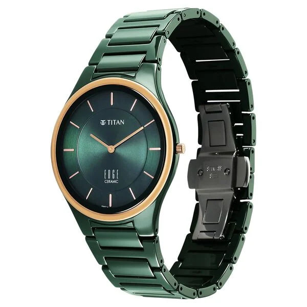 Titan Edge Bicolour Quartz Analog Green Dial And Green Ceramic Strap Watch For Men - 1696KC10