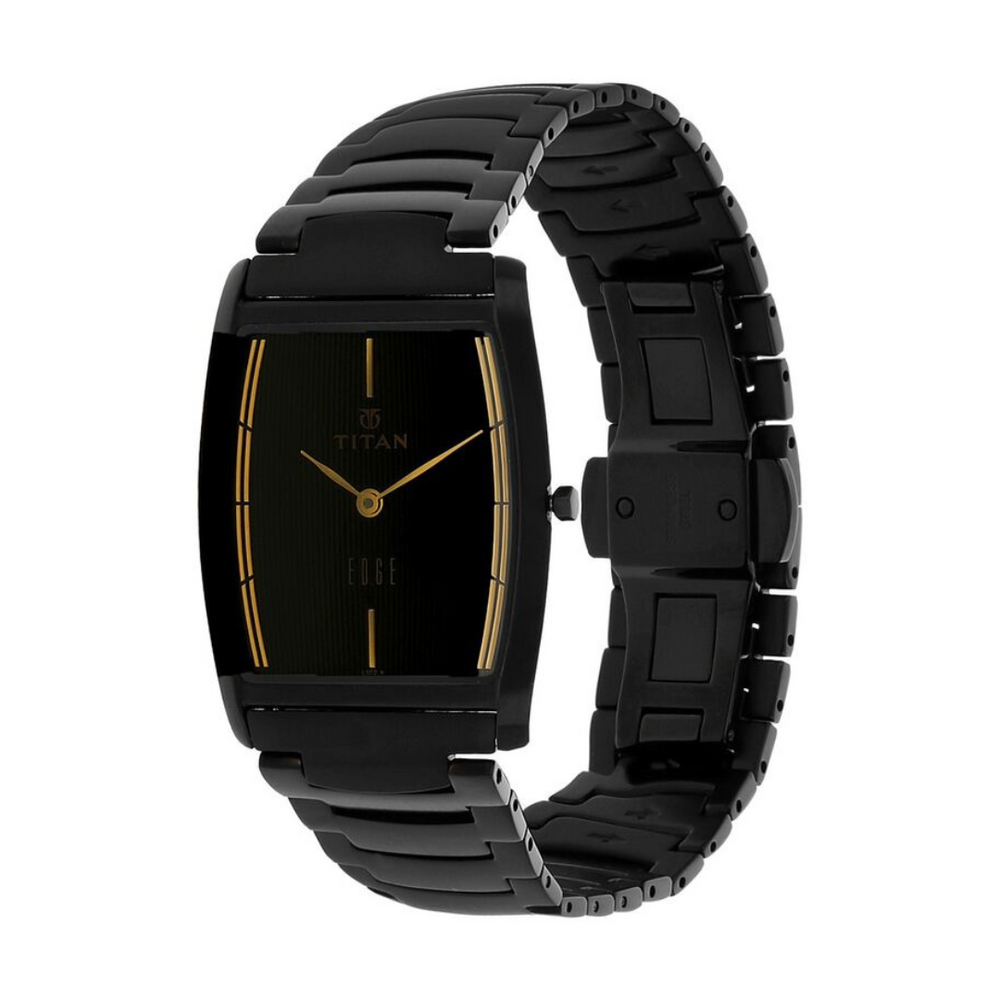 Titan Edge Black Tonneau Dial Analog Stainless Steel Strap Watch for Men 1044NM01