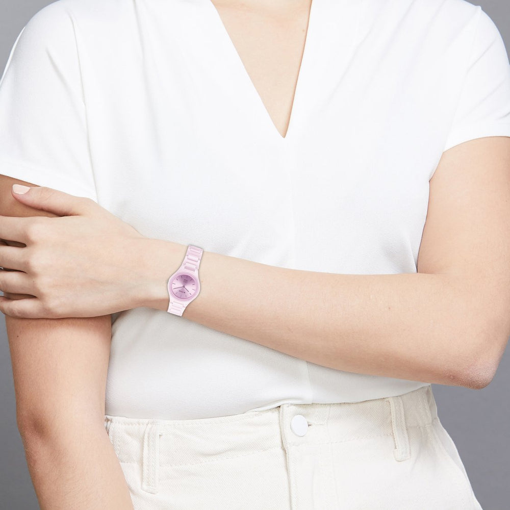 Make a bold impression with this sophisticated watch. The round dial features a classic 2-hand movement, with stick indices, along with a flat sapphire glass. Designed for both style and durability, the watch offers water resistance up to 30 meters and is equipped with a robust ceramic strap, secured with a butterfly clasp closure for a comfortable fit.