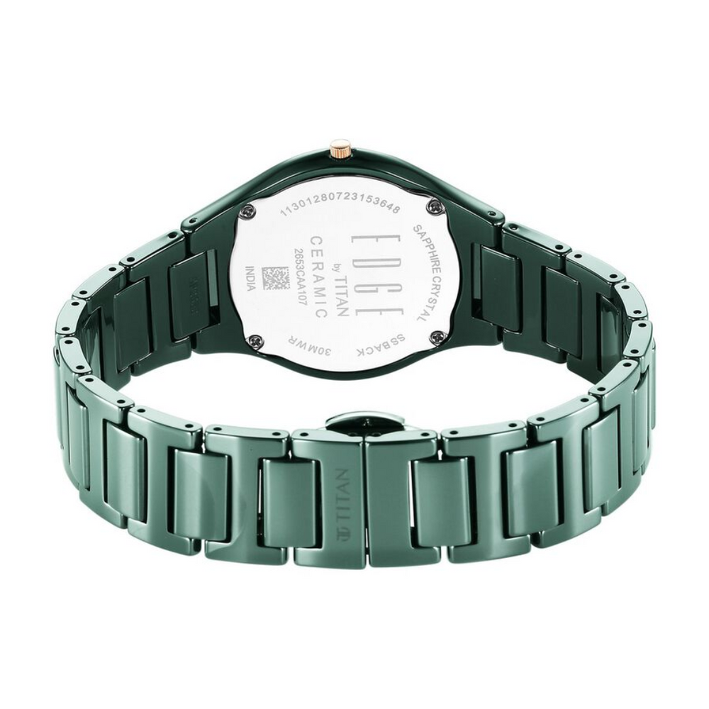 Titan Edge Ceramic Quartz Analog Green Dial Ceramic Strap Watch for Women 2653QC06