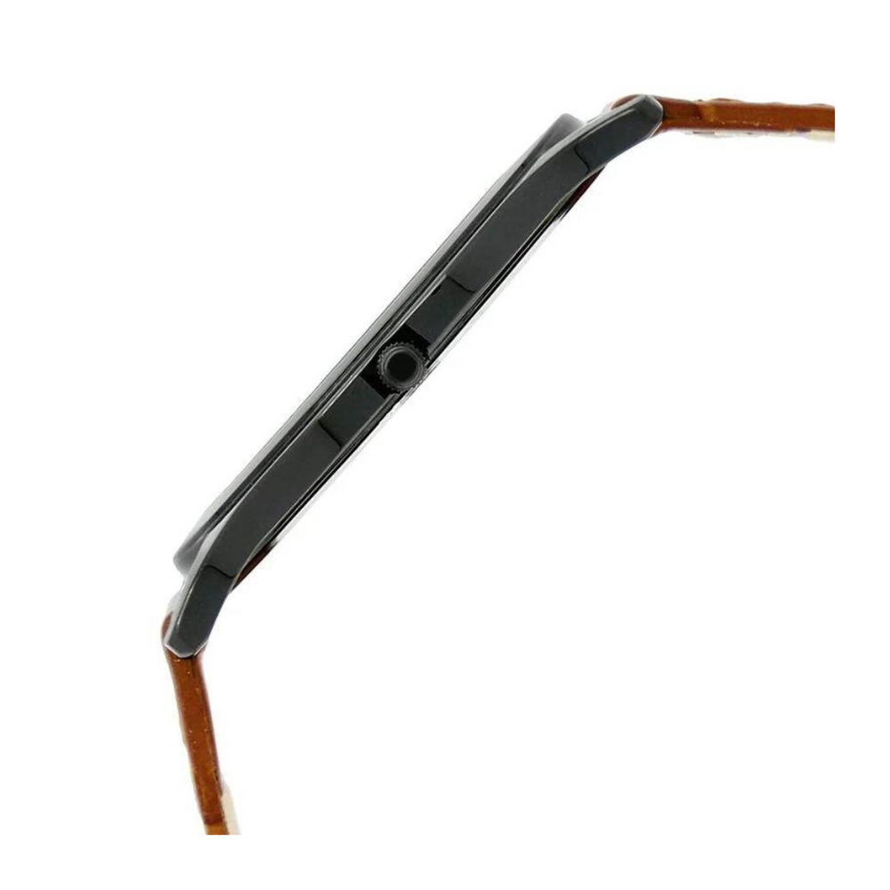Elevate your style with Titan's Edge, the world's slimmest watch, now featuring a new date display. This slim marvel, with a brown dial and a black croc leather strap secured by a buckle closure, combines chic aesthetics with enhanced functionality. The Saphire crystal glass ensures durability, and the watch is backed by a 2-year warranty on movement, a perfect companion for efficiency and elegance.