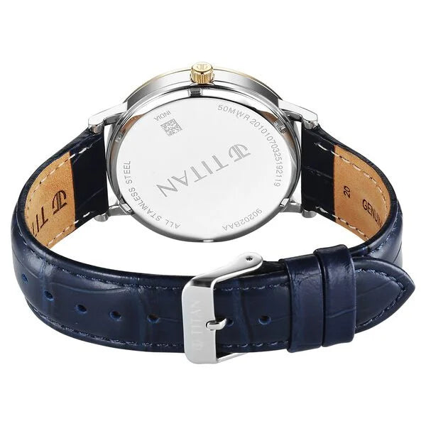Discover the perfect finishing touch to your formal wardrobe with the Titan Elegance Collection - where refined design meets contemporary craftsmanship. These elegant men�s watches are thoughtfully designed for those who appreciate subtle luxury and timeless style. Choose from two standout styles - A distinctive date-by-hand feature where a fourth hand with a red-tipped marker points to the date on a sleek outer ring. A small seconds sub-dial that adds character and functionality while maintaining the watch�s clean, minimal aesthetic. Sleek indices and polished hands give the dial a crisp, modern finish, while the domed mineral glass enhances depth and brilliance. Paired with classic color combinations both in leather and stainless steel, each timepiece in this collection is a refined statement for business meetings, special occasions, or everyday sophistication.