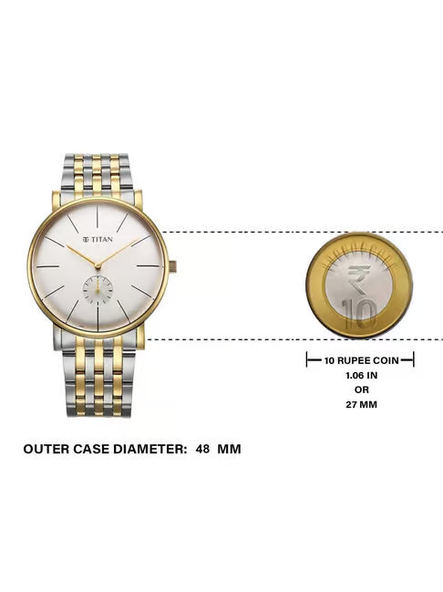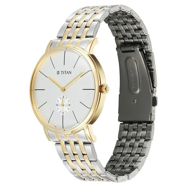 Discover the perfect finishing touch to your formal wardrobe with the Titan Elegance Collection - where refined design meets contemporary craftsmanship. These elegant men�s watches are thoughtfully designed for those who appreciate subtle luxury and timeless style. Choose from two standout styles - A distinctive date-by-hand feature where a fourth hand with a red-tipped marker points to the date on a sleek outer ring. A small seconds sub-dial that adds character and functionality while maintaining the watch�s clean, minimal aesthetic. Sleek indices and polished hands give the dial a crisp, modern finish, while the domed mineral glass enhances depth and brilliance. Paired with classic color combinations both in leather and stainless steel, each timepiece in this collection is a refined statement for business meetings, special occasions, or everyday sophistication.