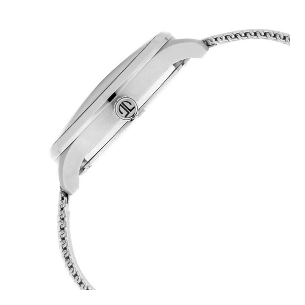 For the man secure in his masculinity, this attractive watch boasts a bright navy-blue dial with two sub-dials featuring Day & Date functions. The sleek silver mesh strap adds intrigue and a debonair flair to your style. Make a statement with this watch that seamlessly combines boldness with sophistication.