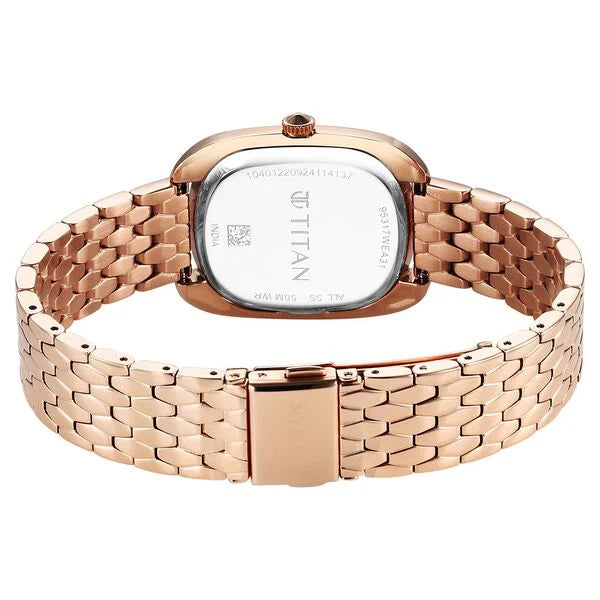 Titan Glamour Quartz Analog Blue Dial Rose Gold Stainless Steel Strap Watch For Women 95317wm01