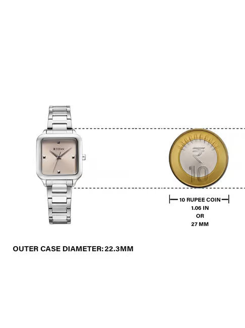 Introducing Titan watch 95297SM01, a premium timepiece from the Titan watches for Women & from collection HORIZON. This brand hailing from India, this time piece exemplifies the quality found across Titan watches, featuring Quartz movement and a durable Mineral-Metalized. Its distinctive Stainless Steel case adds a modern touch, while offering water resistance up to 50m. The Analog dial ensures timeless elegance, backed by a 24 Months warranty for your peace of mind.