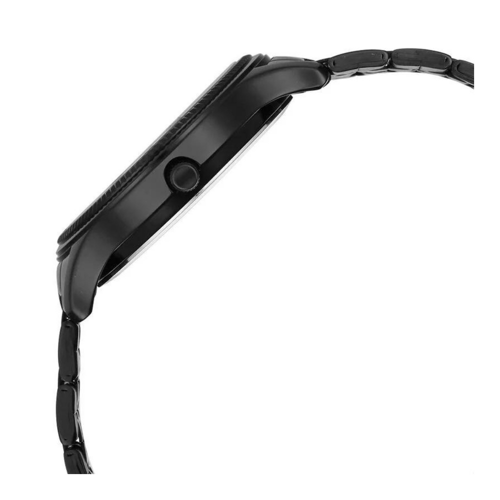 Bring a stylish dimension to your look by wearing this men's analog watch from the Karishma collection by Titan. The black round-shaped European numbers and stick dial is nestled in a 40.2 mm case. It features a plain 3-hand functionality and works on a quartz movement. The stainless steel bracelet exudes a black hue that accentuates the look of the watch. Moreover, it is fitted with a fold-over clasp that ensures a secure fit on the wrist. It is water-resistant up to 30 m.