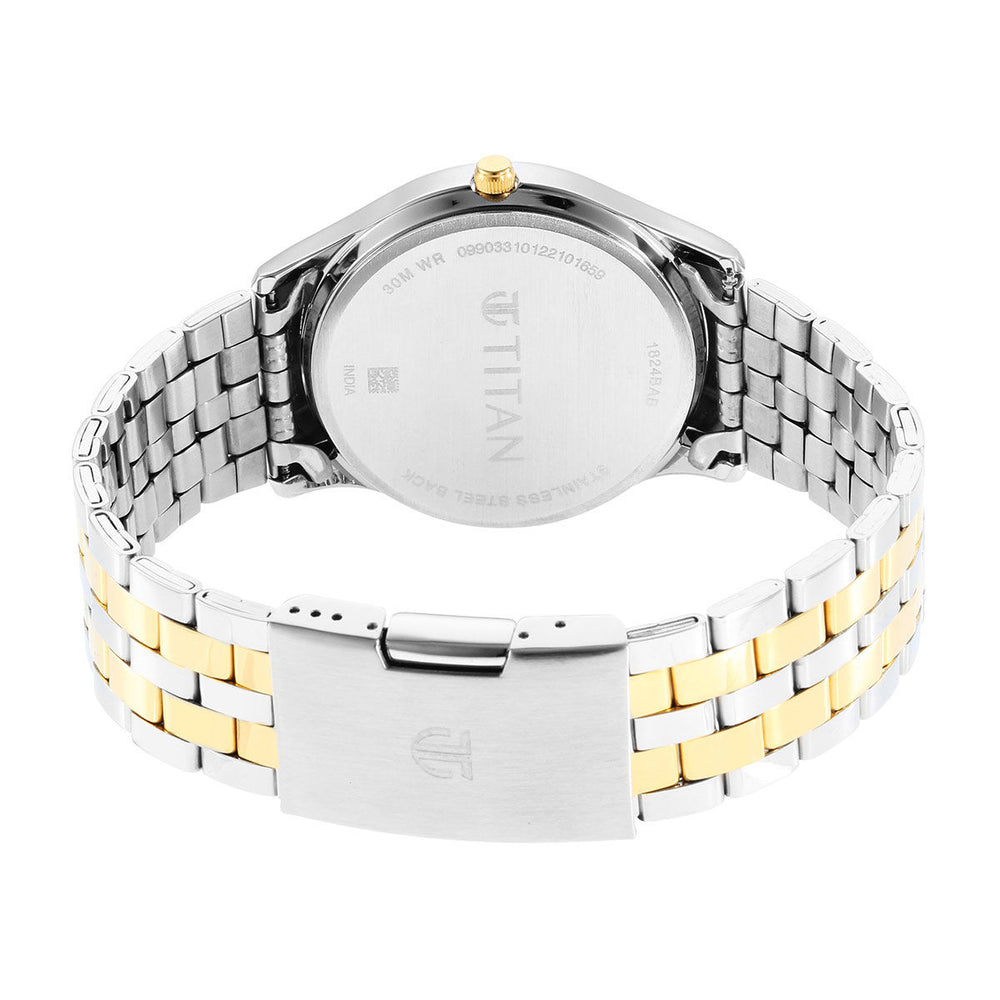 Rev up your accessory collection with this analog watch from the Karishma collection by Titan. Its stainless steel bracelet comes in a shade of silver that elevates the look of the watch. The blue round stick dial has a diameter of 40.2 mm. It is completed with a fold-over clasp to ensure a secure fit on the wrist. It has a plain 3-hand functionality, Quartz movement, sword needles and water resistance up to 30 m. It shows accurate day and date.