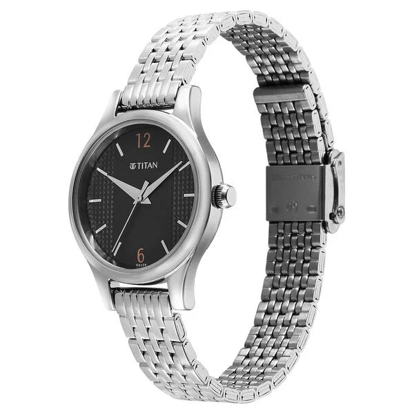 Titan Karishma Quartz Analog Black Dial Silver Stainless Steel Strap Watch For Women 2679sm02