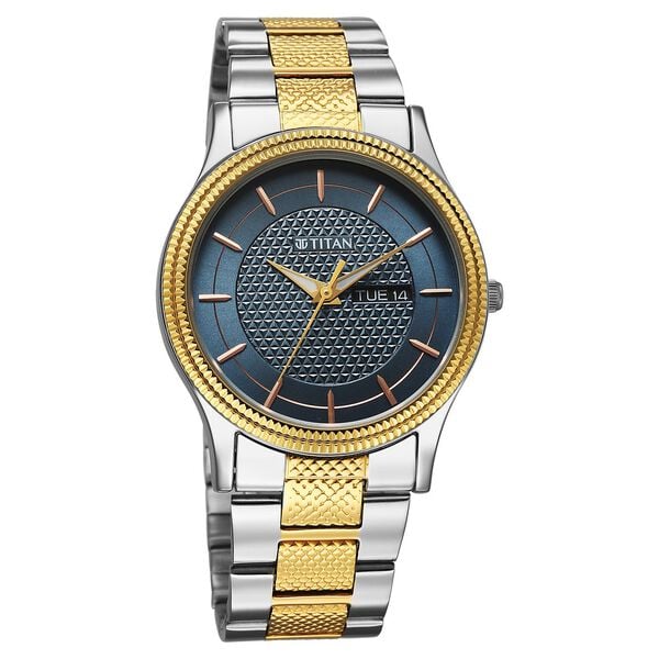 Titan Karishma Wedding Edit Quartz Analog with Day and Date Blue Dial Stainless Steel Strap Watch For Men - 1650BM05
