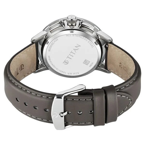 Titan Light leathers Multifunction Anthracite Dial Leather Strap Watch For Men 90200sl02