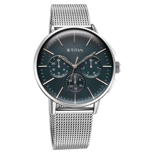 Titan Light leathers Multifunction Anthracite Dial Stainless Steel Strap Watch For Men 90200sm01