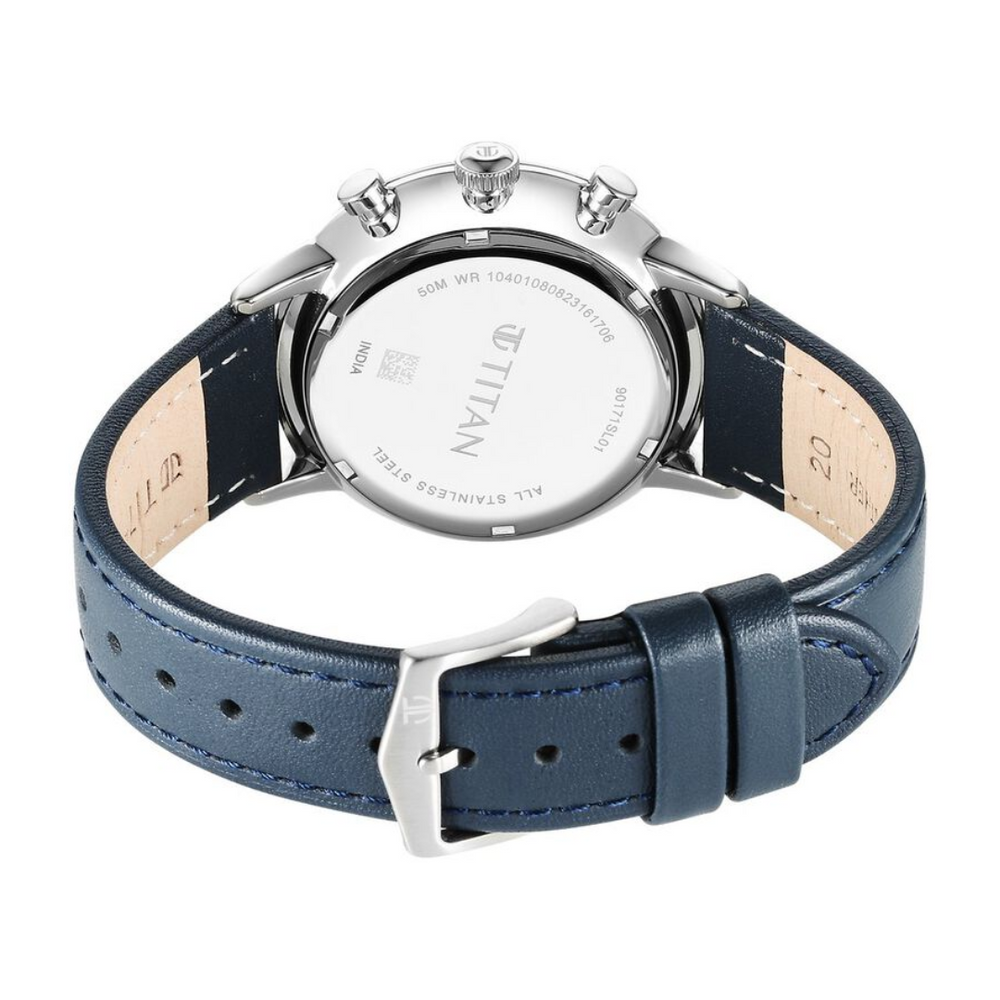 Titan Light Leathers Quartz Multifunction Black Dial Stainless Steel Strap Watch for Men - 90171SL01