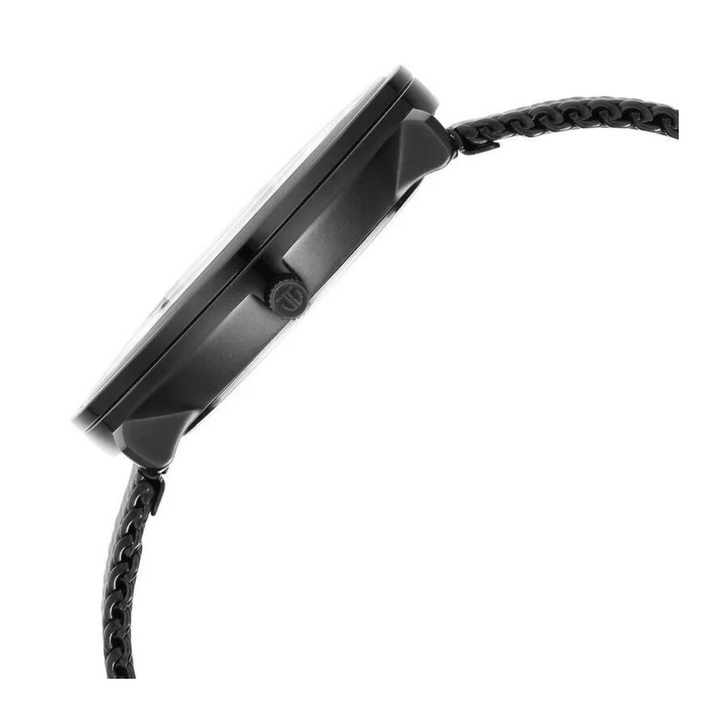 Redefine fashion with this fashionable black watch featuring Roman numeral indices and three chronograph sub-dials. The sleek hands and black textured metal strap add a contemporary edge, making it a statement piece for your everyday style.