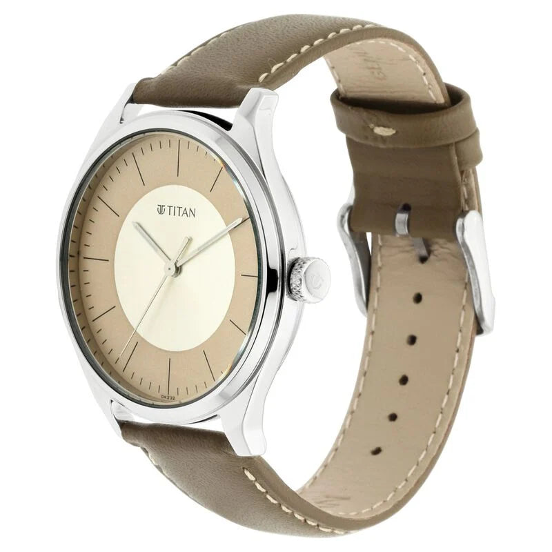 Titan Men's Urban Edge Lustrous Gold Dial Leather Watch - 1802SL09
