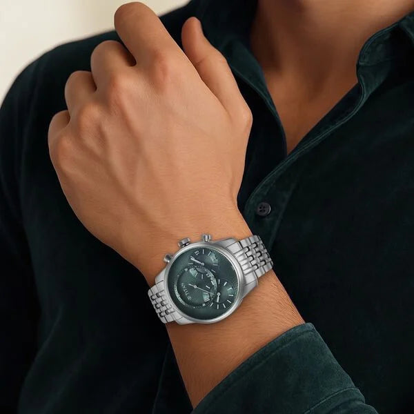 Discover the Titan Micromotors Collection - a bold reimagination of quartz watches that blends technical ingenuity with standout style. Powered by Titan�s proprietary Micromotors movement, this innovative range features three distinctive designs with groundbreaking dial constructions - including retrograde day arcs, dual-layer sun and moon indicators, and independent hour, minute, and second rings. Time is deconstructed into visually striking layouts, turning each watch into a conversation starter - not just a timekeeper. Designed for those who seek fashion with function, every piece features sapphire crystal glass, solid link stainless steel bracelets in sculptural forms, and a premium butterfly buckle for a refined finish.A perfect fusion of precision, personality, and cutting-edge design, the Titan Micromotors Collection brings a fresh, fashion-forward perspective to modern quartz watches.