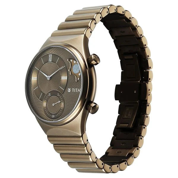 Discover the Titan Micromotors Collection - a bold reimagination of quartz watches that blends technical ingenuity with standout style. Powered by Titan�s proprietary Micromotors movement, this innovative range features three distinctive designs with groundbreaking dial constructions - including retrograde day arcs, dual-layer sun and moon indicators, and independent hour, minute, and second rings. Time is deconstructed into visually striking layouts, turning each watch into a conversation starter - not just a timekeeper. Designed for those who seek fashion with function, every piece features sapphire crystal glass, solid link stainless steel bracelets in sculptural forms, and a premium butterfly buckle for a refined finish.A perfect fusion of precision, personality, and cutting-edge design, the Titan Micromotors Collection brings a fresh, fashion-forward perspective to modern quartz watches