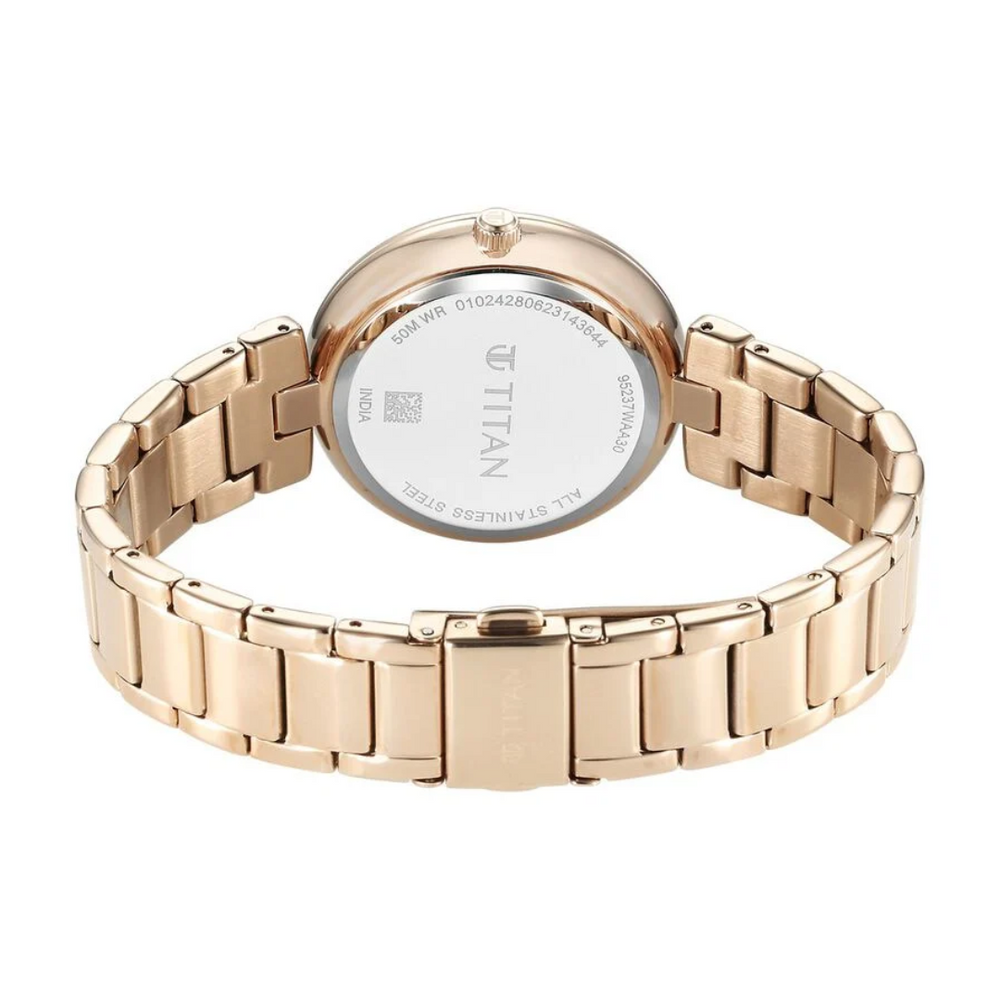 Titan Purple Style Up Quartz Analog Mother Of Pearl Dial Stainless Steel Strap Watch for Women 95237WM02