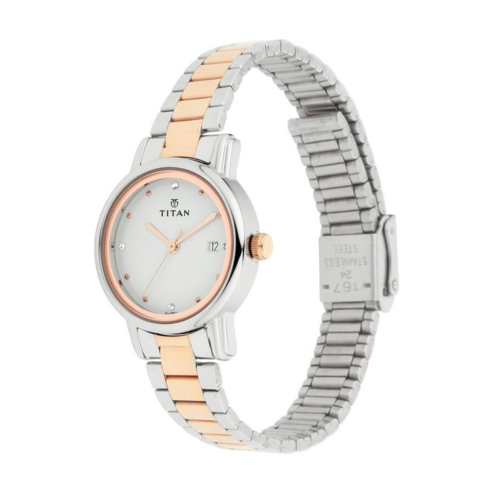 Titan Quartz Analog with Date White Dial Stainless Steel Strap Watch for Women 2572KM01