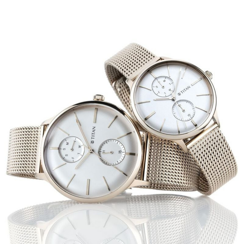 Titan Quartz Multifunction White Dial Stainless Steel Strap Watch for Couple - 9400394203WM01