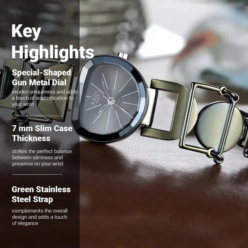 Titan Raga Facets Gun Dial Analog Stainless Steel Strap Watch for Women 95119QM01