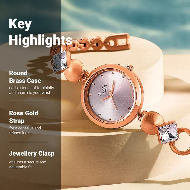 Titan Raga Love All Pink Dial Analog Metal Strap Watch for Women 2606WM10