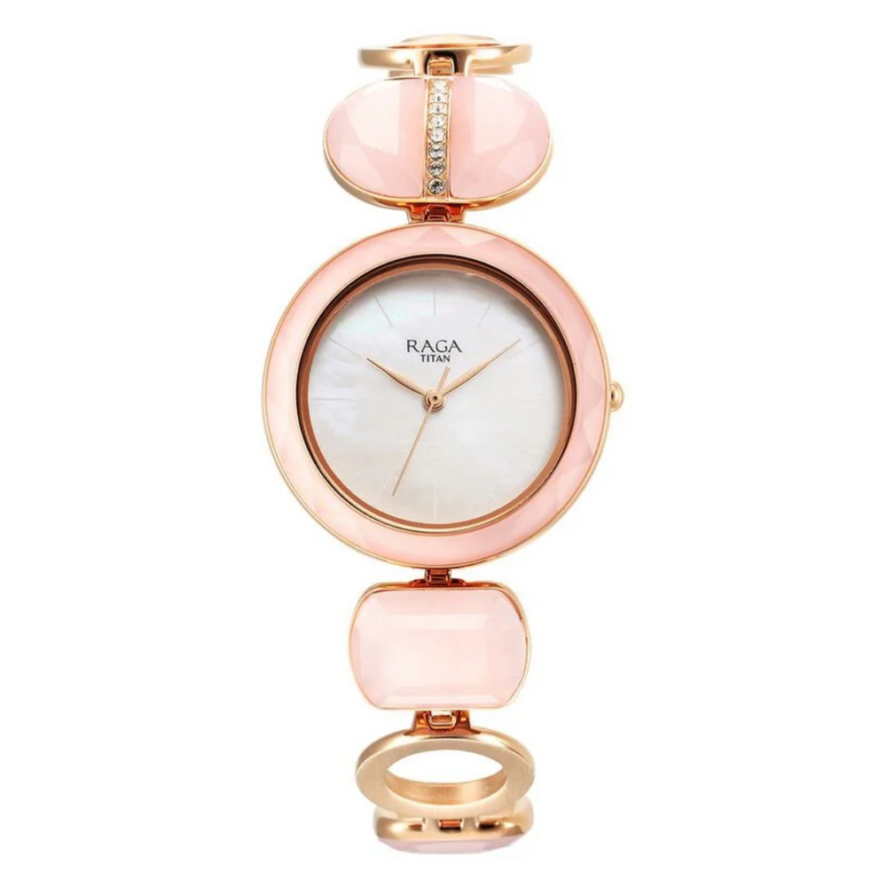 Titan Raga New You Quartz Analog Mother Of Pearl Dial Metal Strap Watch for Women 95195WM01