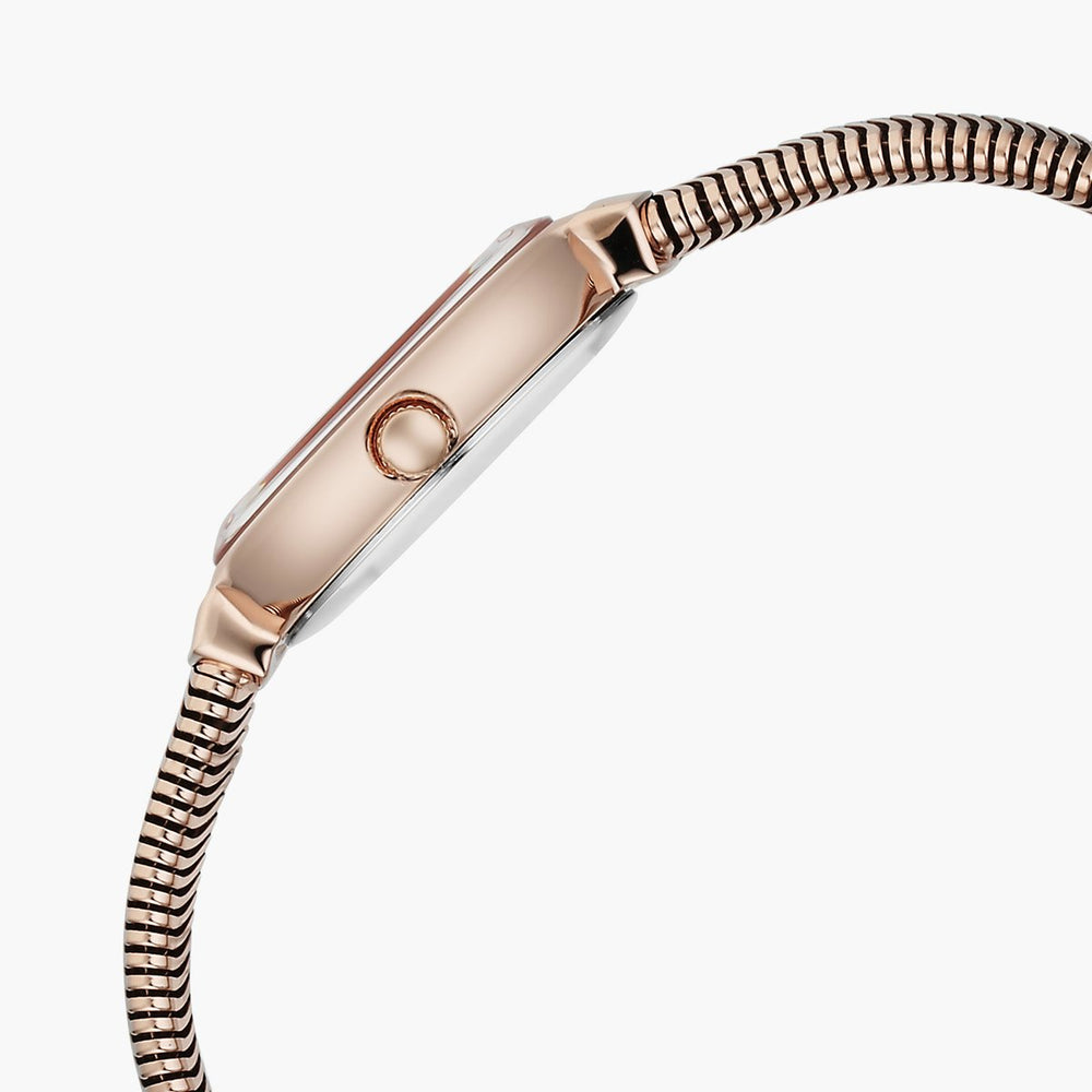 Designed to suit the preference of urban women, this watch from the collection by Titan is sure to make a style statement. Secured by a sapphire glass, the pink round dial is protected in a case. It exhibits crown for time adjustment. The stainless steel strap flaunts a rose gold hue that accentuates the look of the watch. Moreover, it is fitted with a jewellery clasp to ensure a secure fit on the wrist.