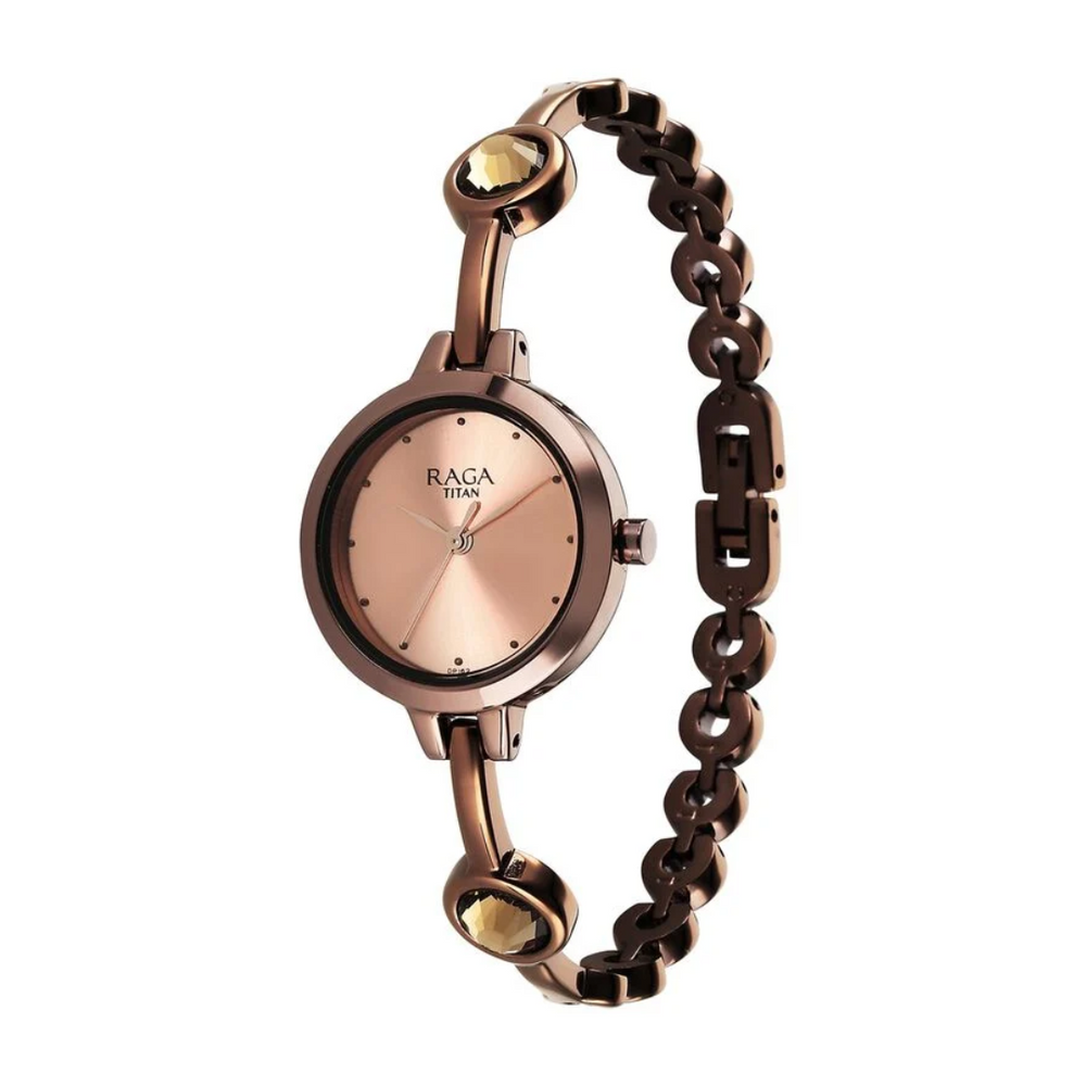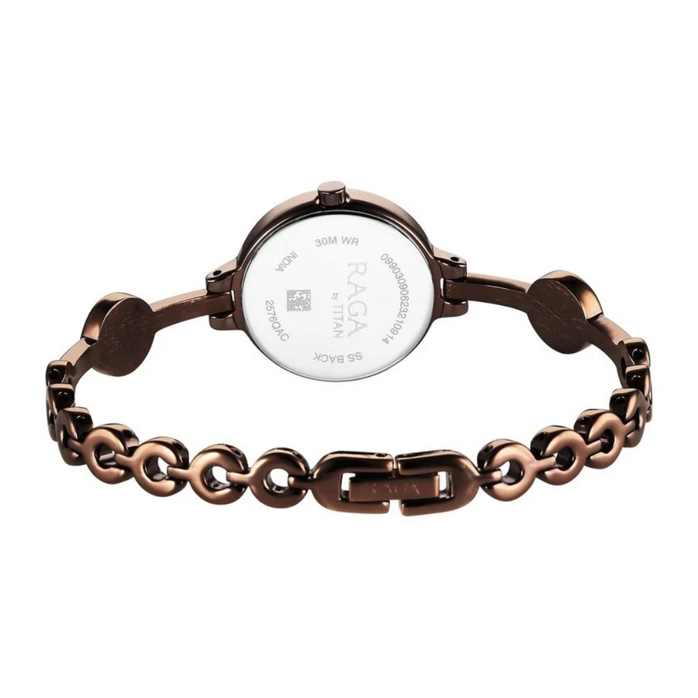 Titan Raga Viva Quartz Analog Rose Gold Dial Brown Metal Strap Watch for Women 2576QM01