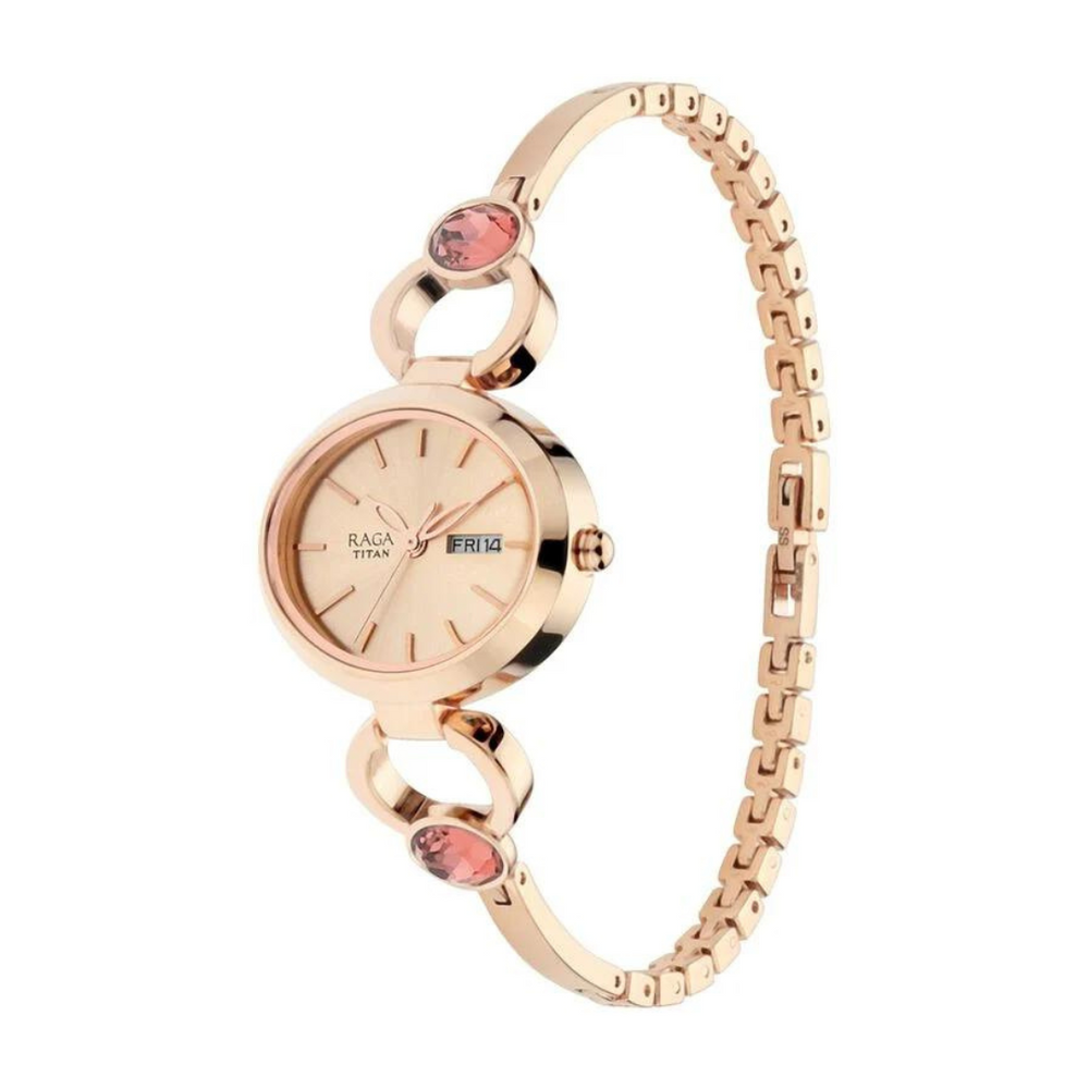 Titan Raga Viva Rose Gold Dial Analog with Day and Date Metal Strap Watch for Women - 2621WM01