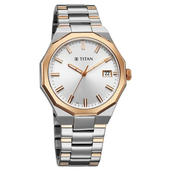 Titan Regalia Dodecagon Quartz Analog with Date Silver Dial Two Toned Stainless Steel Strap Watch For Men 90212km01