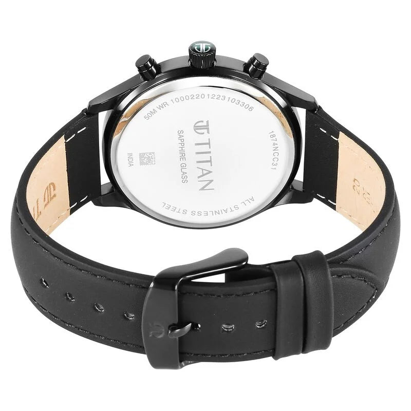 Titan Sapphire Multifunction Quartz Analog with Day and Date Green Dial Leather Strap Watch for Men 1874NL01