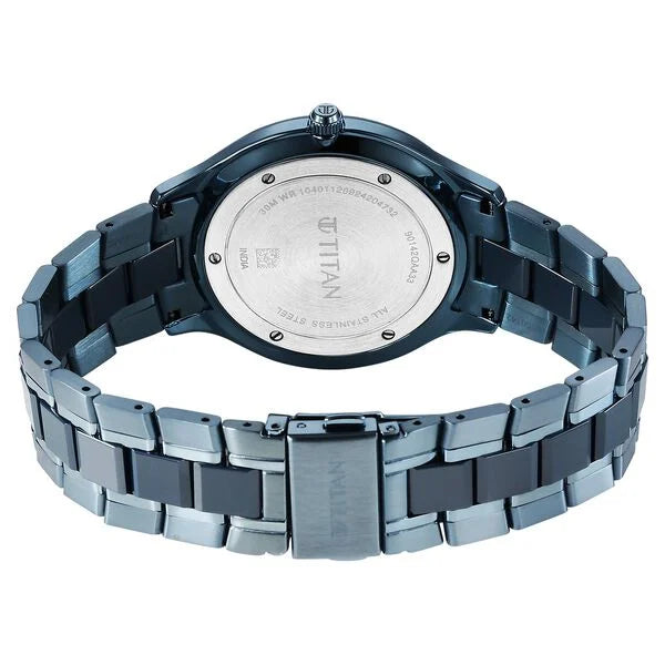 Titan Slim Ceramic Fusion Quartz Analog with Date Blue Dial Stainless Steel Strap Watch For Men 90142qd01