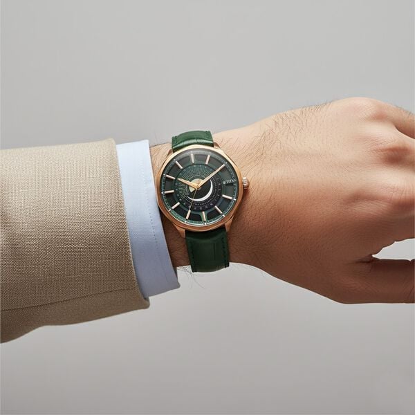 Step into the cosmic realm with a watch inspired by ancient astronomy, where the Sun and Moon intertwine in a mesmerizing 24-hour display. The centre dial, shaped like a black hole silhouette, creates infinite depth against the faceted bezel. The in-house Quartz 7137B movement powers this geometric Sun-Moon disc, turning time into a poetic spectacle. Available in Bronze Patina, Classic Steel, and IP Bronze variants, each timepiece balances bold geometry with timeless elegance. Key Features: Sun-Moon disc with 24-hour markings, Faceted bezel with 3-piece case construction, Centre dial inspired by a black hole silhouette. Water resistance: 5 ATM. Case size: 43 x 45.5 mm. Thickness: 11.55 mm.