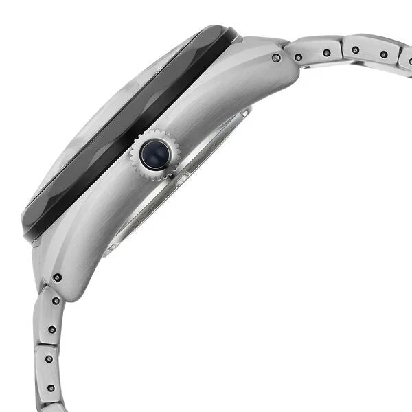 Stellar 2.0 collection by Titan is specially made to exhibit masculine charm. Enclosed in a 45.5 mm case, the black round dial is secured by a sapphire glass. It displays plain three hands. The stainless steel strap exudes a silver hue that accentuates the look of the watch. Besides, it is finished with a push-button clasp that provides a secure fit on the wrist.