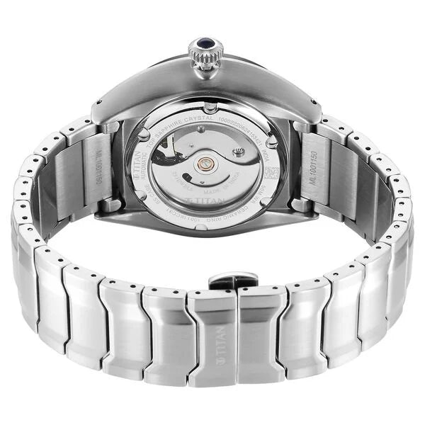 Titan Stellar Automatic Sun Moon Phase Grey Dial Stainless Steel Strap Watch For Men 10011km02