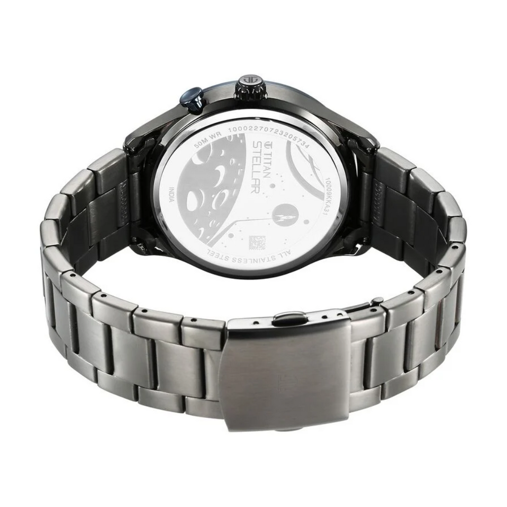 Titan Stellar Quartz Multifunction Blue Dial Stainless Steel Strap Watch for Men 10009KM01