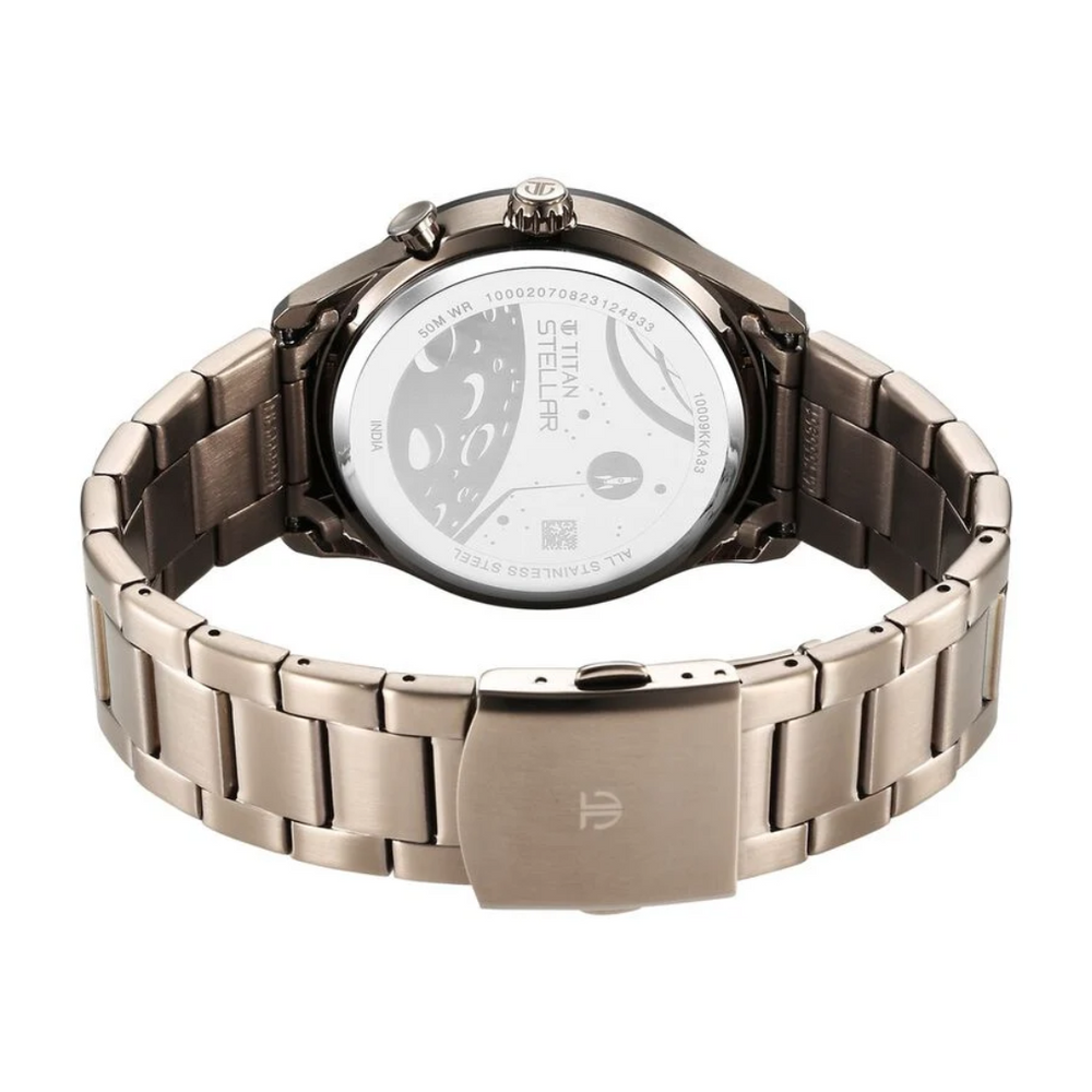 Titan Stellar Quartz Multifunction Brown Dial Stainless Steel Strap Watch for Men 10009KM03