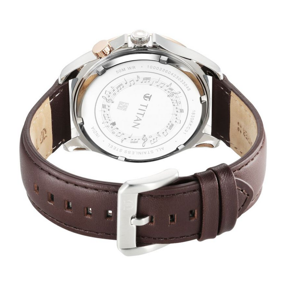 Titan Techno Beats Black Dial Analog with Day and Date Steel Strap Watch for Men 1830KL03