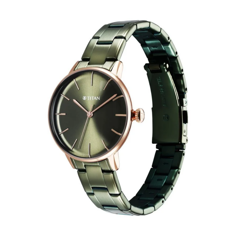 Titan TGIF Quartz Analog Green Dial Green Stainless Steel Strap Watch for Women - 95248KM03