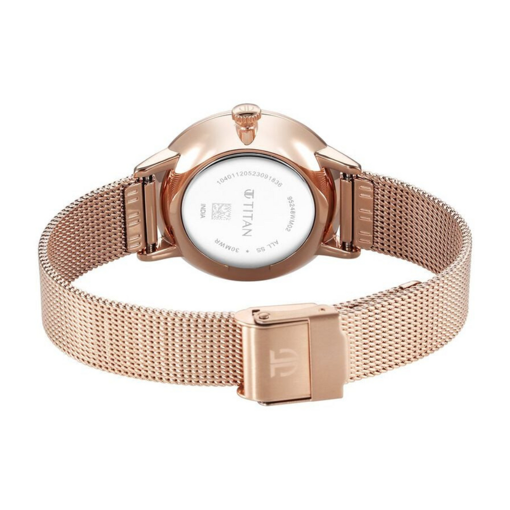 Titan TGIF Quartz Analog Mother Of Pearl Dial Rose Gold Stainless Steel Strap Watch for Women NS95248WM02