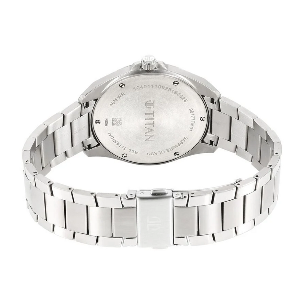 Titan Titanium Quartz Analog Blue Dial Stainless Steel Strap Watch for Men 90177TM01