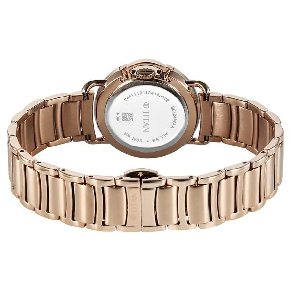 Titan Workmode Quartz Analog Rose Gold Dial Stainless Steel Strap Watch For Women - 95324WM01