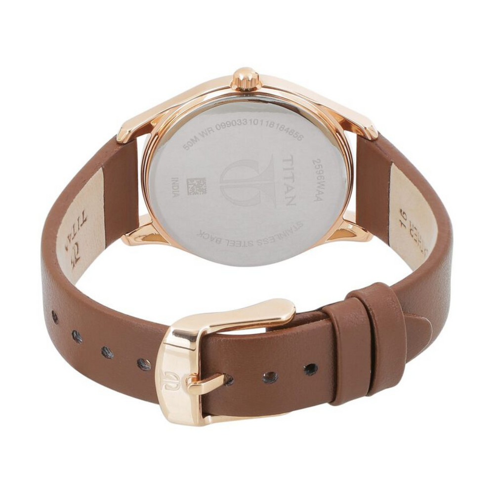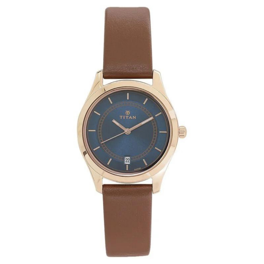 Titan Workwear Blue Dial Analog with Date Leather Strap watch for Women 2596WL03