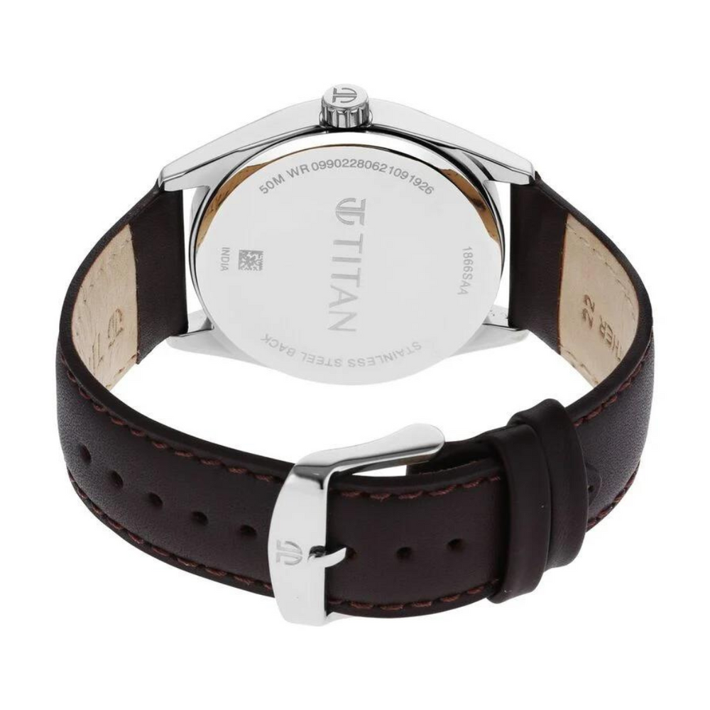 Titan Workwear Brown Dial Analog Leather Strap Watch Men 1866SL02