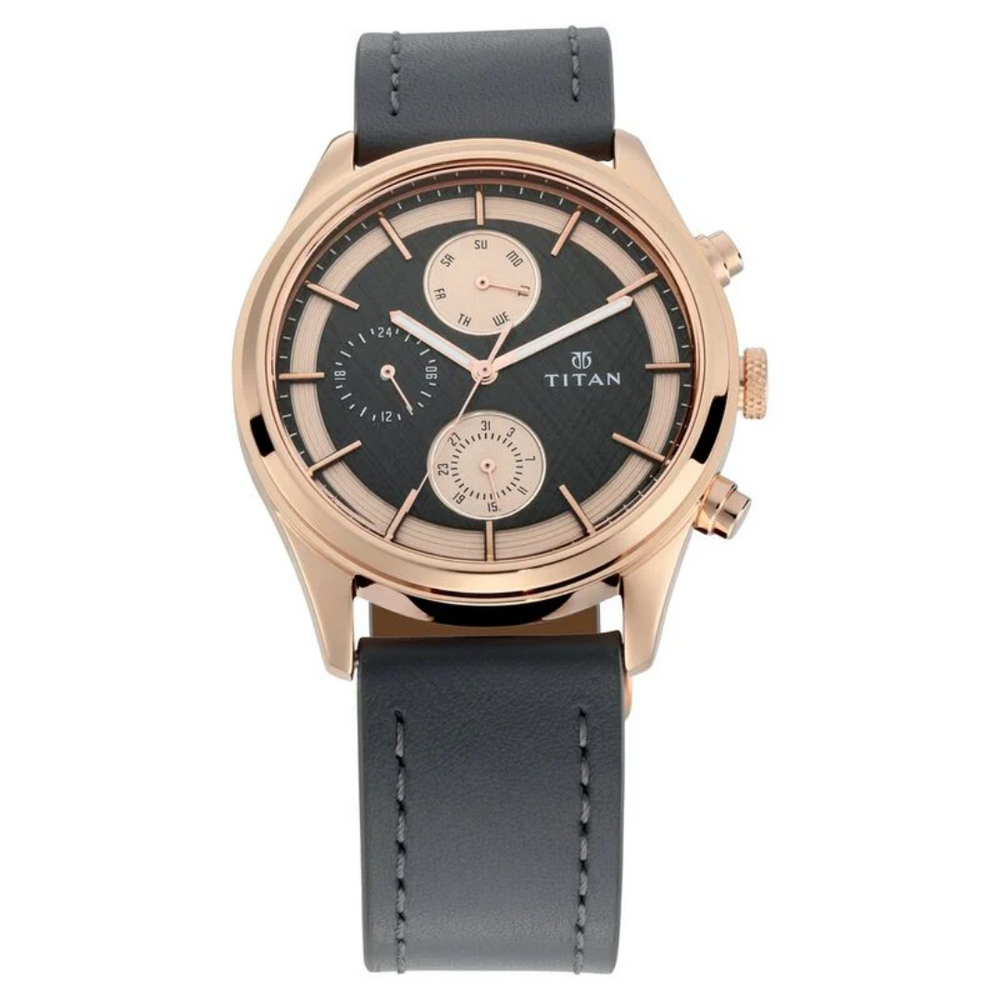 Titan Workwear Grey Dial Quartz Multifunction Leather Strap watch for Men 1805WL01